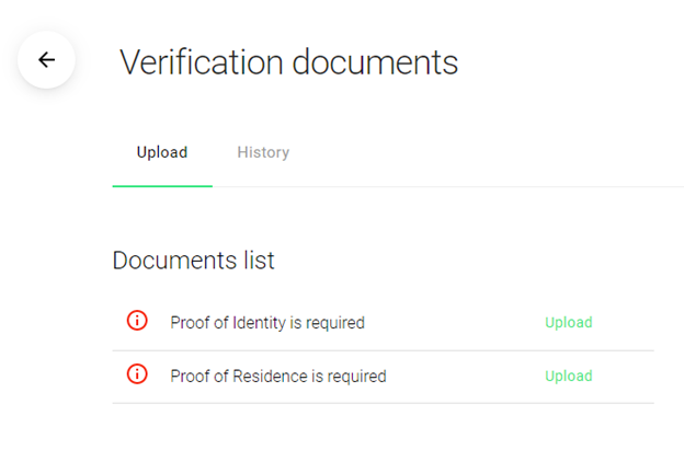 The documents can be uploaded on your Dashboard once you log into your account, under the section “Settings” > “Profile” > “Verification Documents” as shown on the below screenshots: